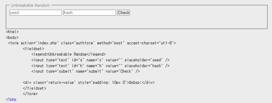 seed 와 hash를 입력하는 칸이 있고, 옆에는 check 버튼이 있다.