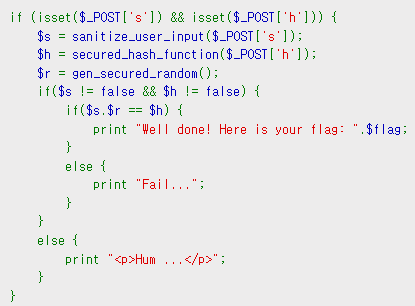 $s + $r 의 값이 $h 값과 같은지 확인하고 있다.