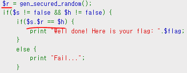 마지막으로 gen_secured_random 함수의 결과로 생성된 $r 을 이용해