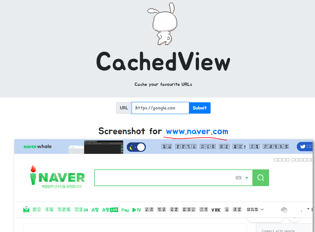 사용자가 입력한 URL에 방문해서 해당 페이지를 Caching 하는 기능의 웹페이지이다.