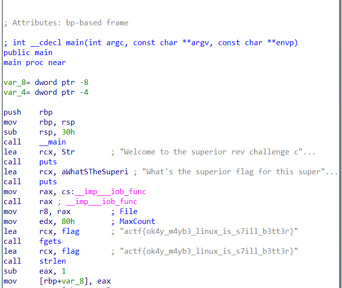 문제설명을 보면 무슨 superior operating system 으로 만들어진 프로그램을 분석하라고 한다.
