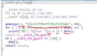 qmemcpy 를 이용해서 v2 변수에 알수 없는 이상한 값(llj=?=?tfknPf|PbvPi}fjakr)을 담고 있다.