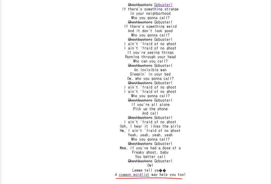 마지막 줄에 보면 common wordlist 가 도움이 될거라고 적혀있다.