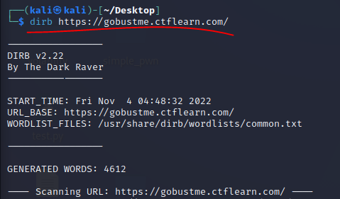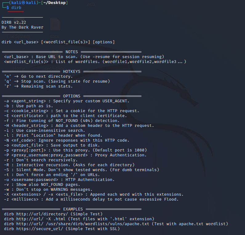 간단하게 dirb <url> 형태로 실행할 수 있다.