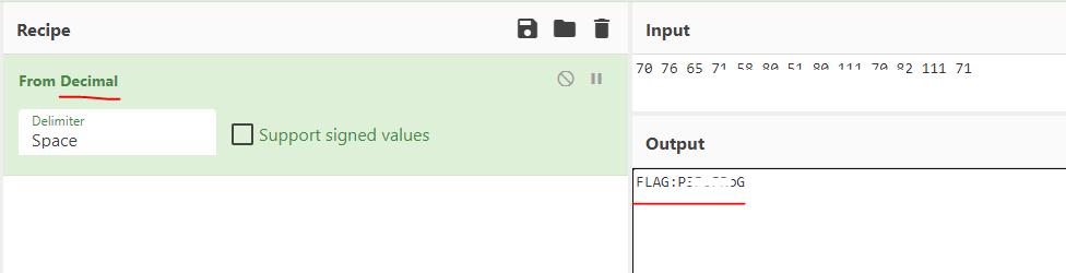 CyberChef(https://gchq.github.io/CyberChef) 에서 From Decimal 으로 디코딩해주면