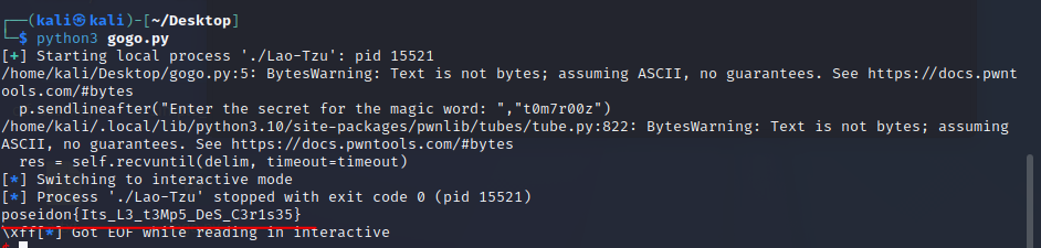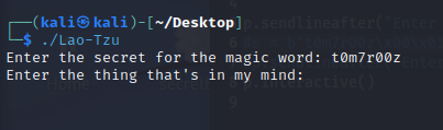 p.sendlineafter("Enter the secret for the magic word: ","t0m7r00z")
