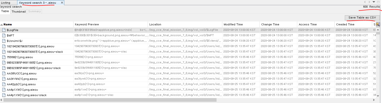 가장 먼저 .aieou 파일이 생성된 시각을 확인했는데,