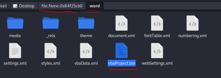 vbaProject.bin 파일이 보인다.