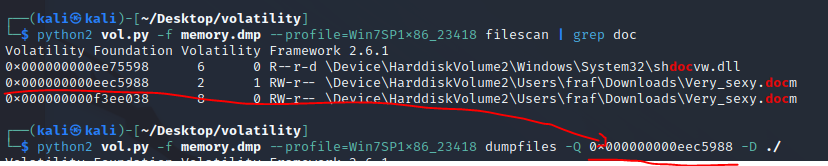 -Q 옵션으로 파일을 지정해준다. filescan 에서 확인한 16진수 값을 넣어주면 된다.