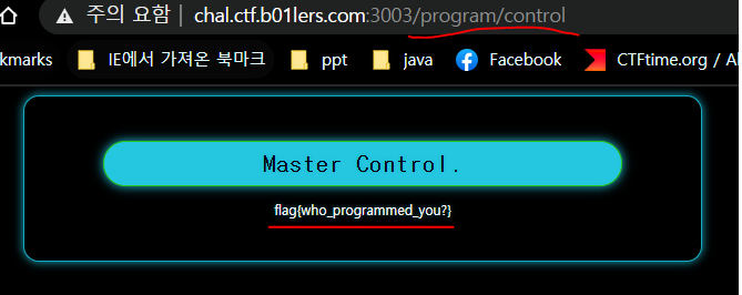 /program/control 경로는 User-agent 가 Master Control Program 0000 인 경우에 접근이 가능함을 볼 수 있다.