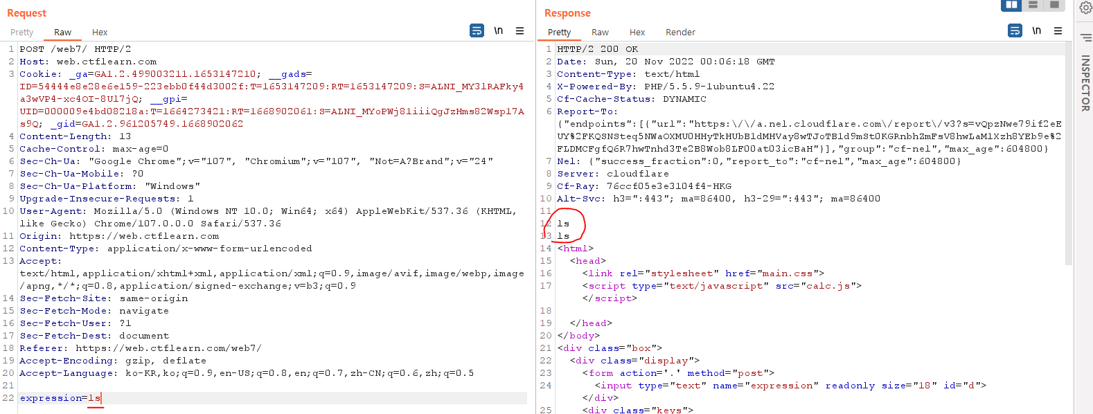 ls 를 넣으면 응답 패킷에 ls ls 형태로 두번 출력되는것을 발견했다.