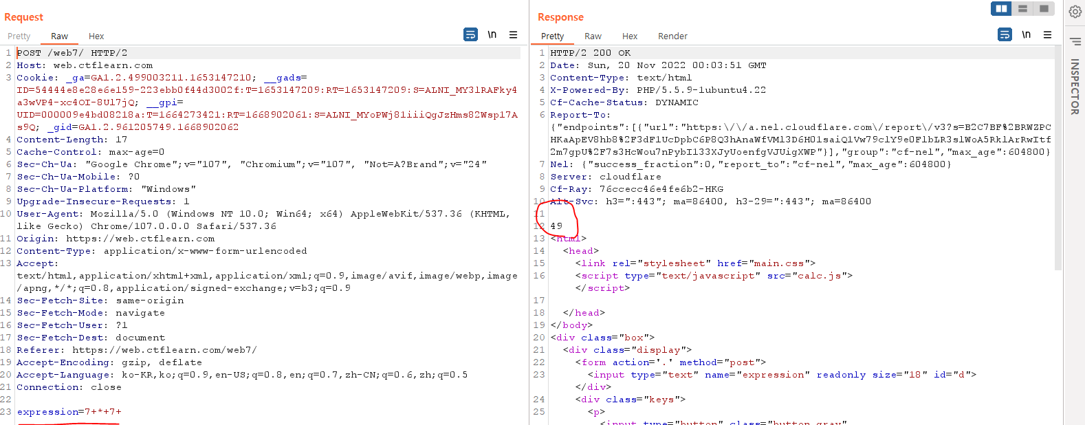 Send to Repeater 버튼을 눌러 Repeater 에서 문제를 풀었다.