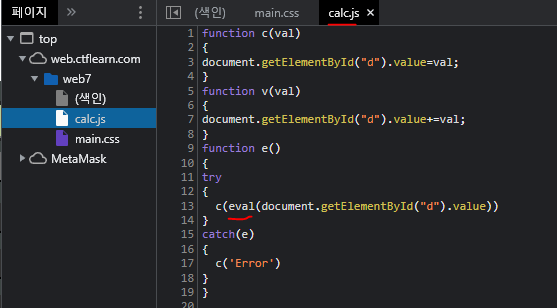 사용자에게 입력받은 수식을 eval 함수를 이용해 계산해서 출력해주는듯 하다.