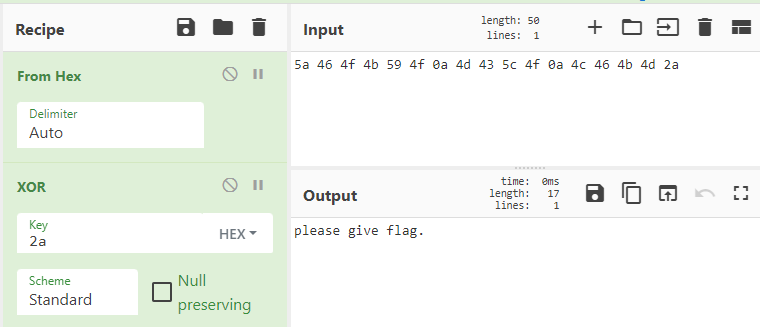 그리고 그 배열은 앞에서부터 차례로 0x2A 라는 값과 XOR 하게된다.