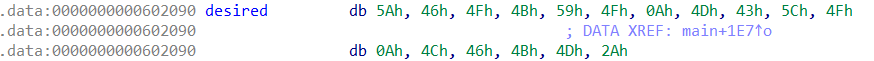 IDA에서 desired 라는 부분을 더블클릭하면 해당 배열의 내용을 볼 수 있다.
