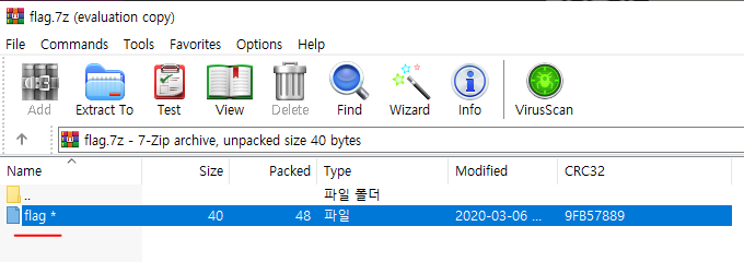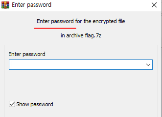 아까 햇던것과 같이 HxD에 hex값을 복붙해서 flag.7z 파일을 생성하고
