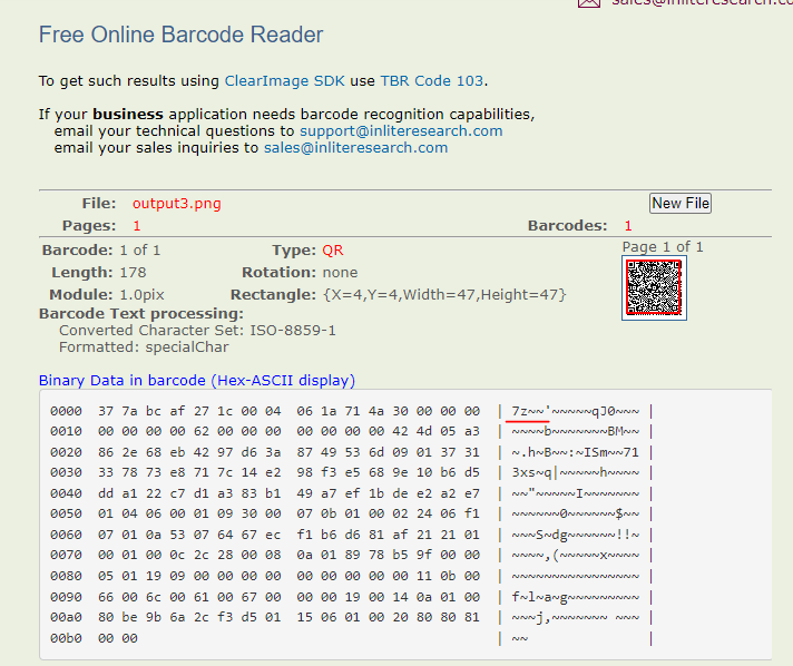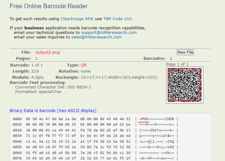 다시한번 온라인 바코드 리더를 이용해 QR코드를 읽어봤다.