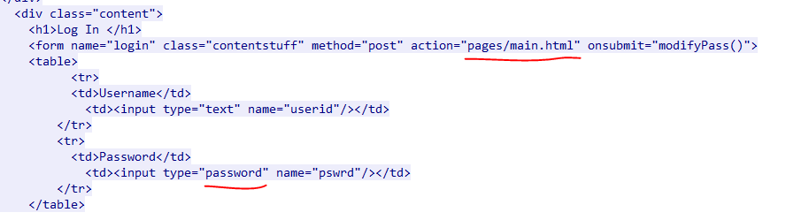 로그인을 할때 action 속성으로 pages/main.html 페이지로 이동하는 것을 볼 수 있다.