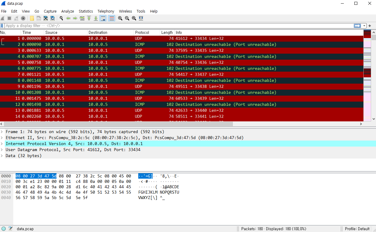 문제에서 주어지는 것은 data.pcap 파일이다.