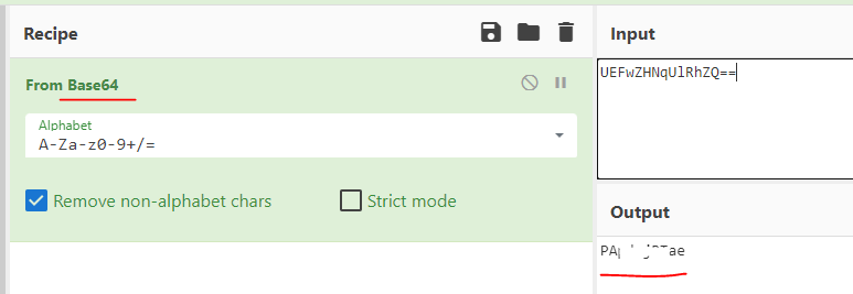 결국 UEFwZHNqUlRhZQ== 가 사용자가 입력한 값이라는 건데
