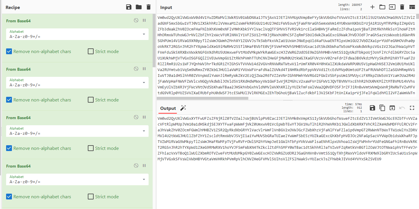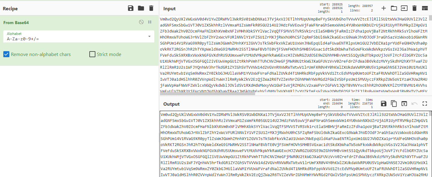 같은 방법으로 Base64 디코딩을 32번 했더니