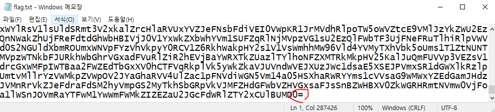 저렇게 알수없는 알파벳+숫자들이 있는 데이터의 맨 끝이 = 또는 == 이라면