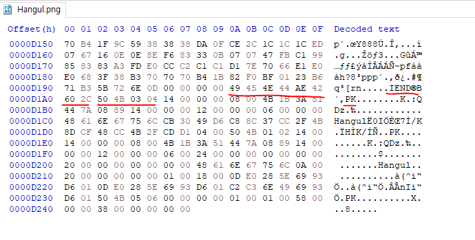 PNG 파일 뒤에 ZIP 파일이 숨어있는 것이다.