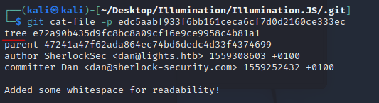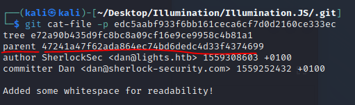 git cat-file -p <parent 객체의 해시값> 을 해주면