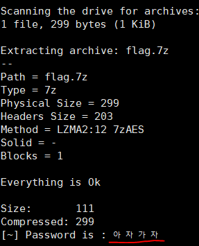 당연하게도 flag.7z 파일은 암호가 걸려있고,