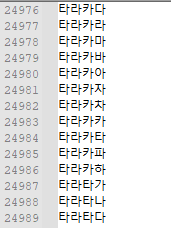 가, 나, 다 ... 부터 하하하하 까지 순서대로 출력시켜 password_list.txt 파일로 저장해줬다.