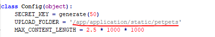 사용자가 업로드하는 파일은 /app/application/static/petpets 경로에 저장되는것을 볼 수 있다.