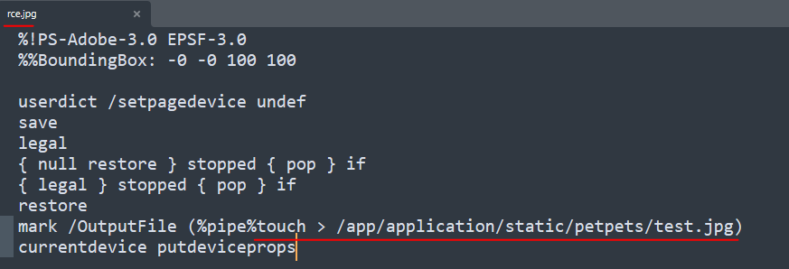 CMD_HERE 부분을 touch > /app/application/static/petpets/test.jpg 라고 변경해준다.