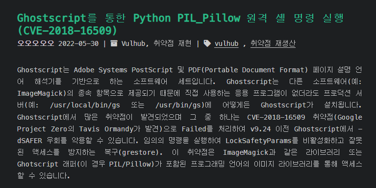 그래서 구글에 pillow vuln, pillow expolit 등등으로 검색해본 결과