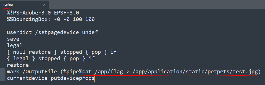 rce.jpg 파일에서 touch 부분을 cat /app/flag 라고 바꿔준 뒤 저장한다.