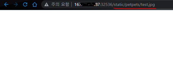 지정한 경로인 /static/petpets/test.jpg 를 URL을 통해 접근해보면