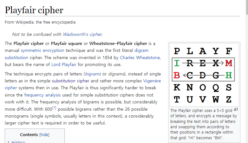 그러다 Playfair Cipher 라는 암호가 있다는걸 알았는데