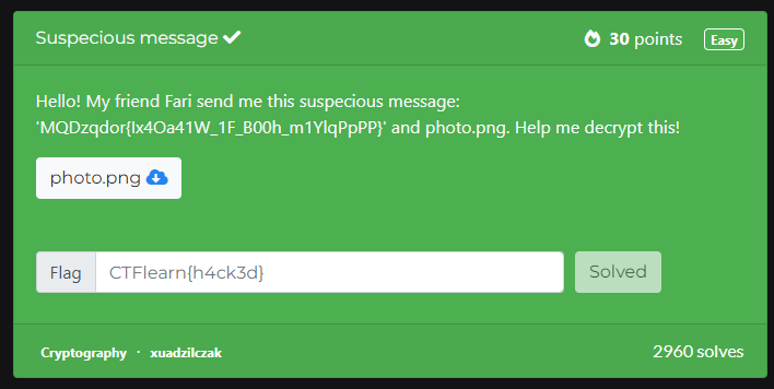 문제에서 주어지는것은 암호문과 photo.png 라는 사진 파일이다.