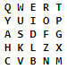 키보드 배열에 있는 영문자들이 왼쪽 상단부터 J를 제외하고 순서대로 적혀있다.
