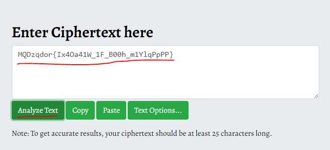저렇게 암호문을 붙여넣은 뒤에 Analyze Text 버튼을 누르면