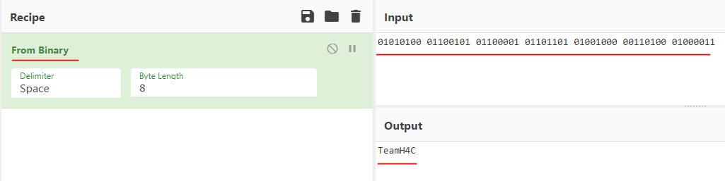 CyberChef 에서 From Binary 레시피로 디코딩을 해주면
