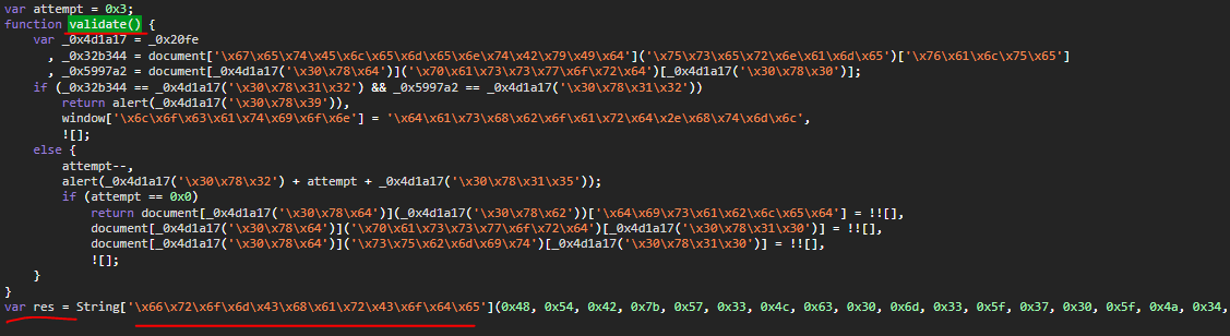 res 바로 뒤에있는 String['\x66\x72\x6f\x6d\x43\x68\x61\x72\x43\x6f\x64\x65'] 에서