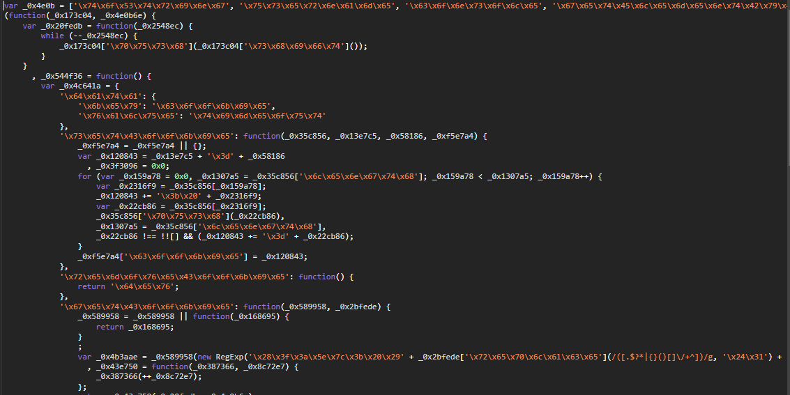 16진수 부분을 CyberChef(https://gchq.github.io/CyberChef)에서 문자로 바꿔보니 fromCharCode 가 나왔다.