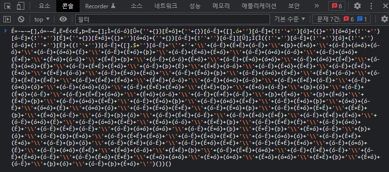 콘솔창에서 난독화된 코드 맨 뒤에 있는 () 를 지워보자