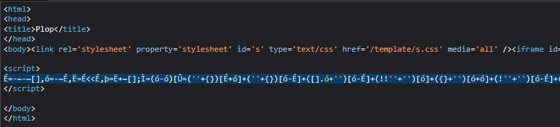 확인해봤더니 중간에 <script> 태그 사이에 알수 없는 외계어들이 써있는걸 볼 수 있다.