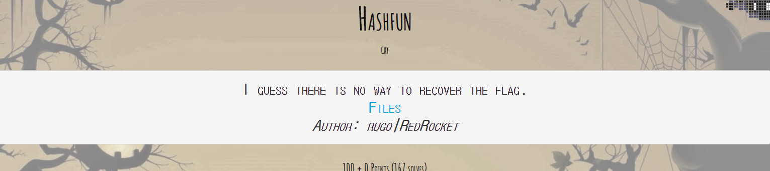 hashfun(FLAG) 의 수행 결과를 print 해주는 단순한 코드이다.