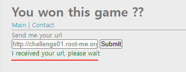 완성시킨 페이로드를 URL형태로 Contact 페이지를 통해 관리자에게 전달하여 읽게 만들어야 하는것 같다.