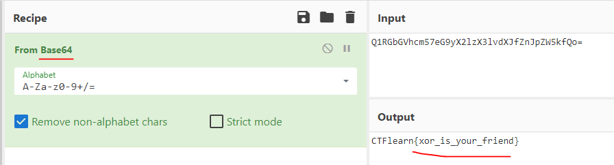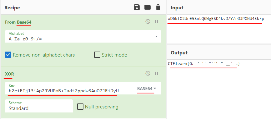 XOR을 할때 Key 값에 Base64 문자열을 넣고, 오른쪽에서 BASE64 라고 선택해주면 된다.