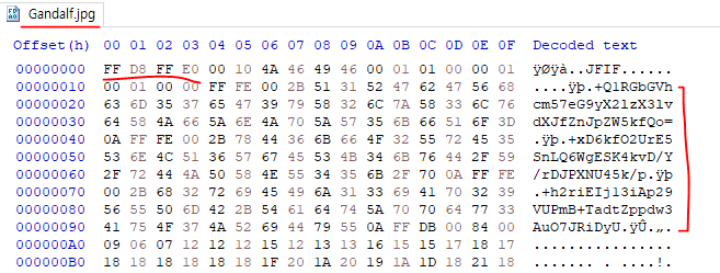 그리고 또 눈에 띄는 부분이 파일 시그니처 밑에 있는 Base64 처럼 보이는 문자열들이다.